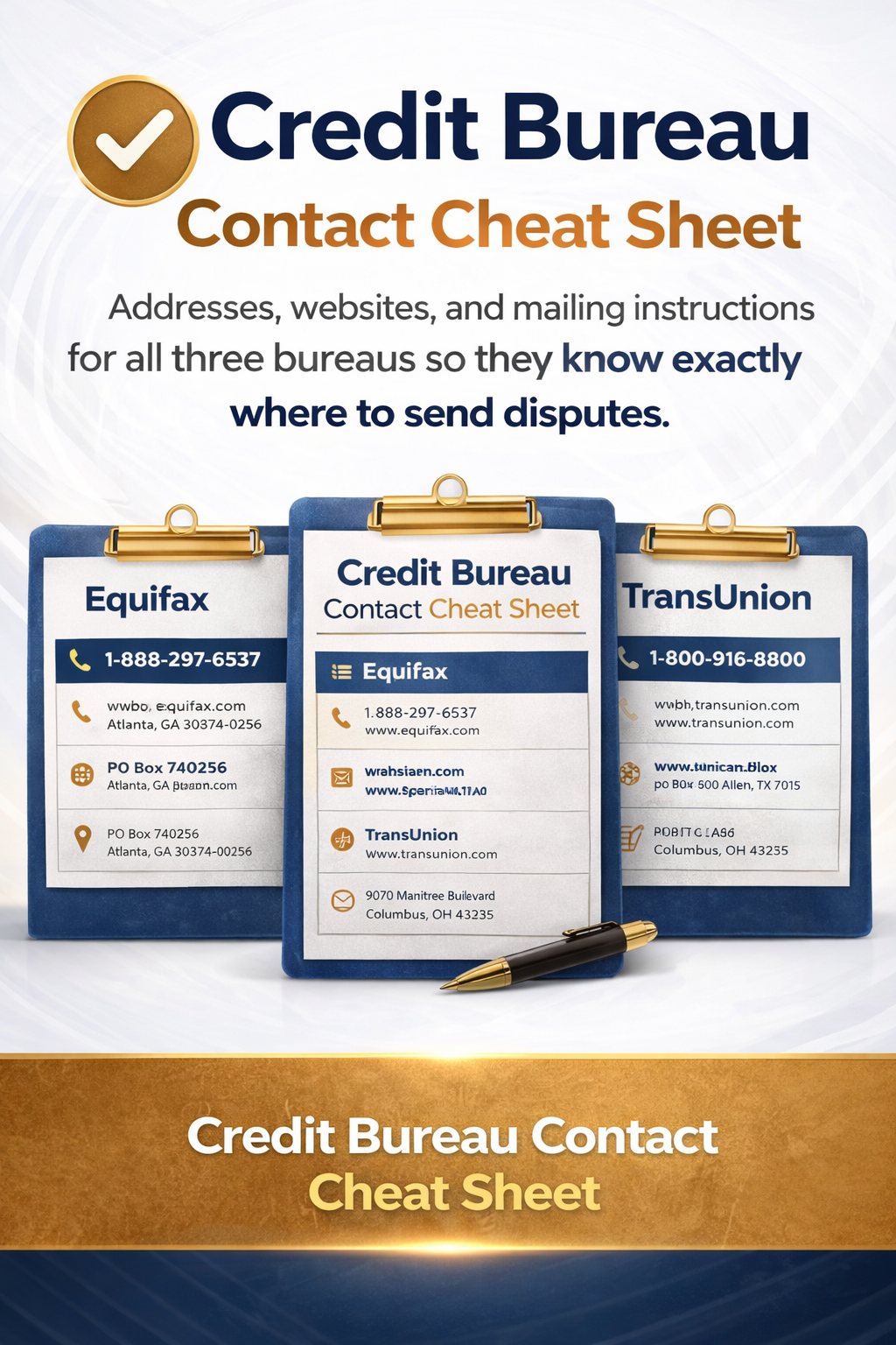 Credit Bureau Contact Cheat Sheet – $397 Value