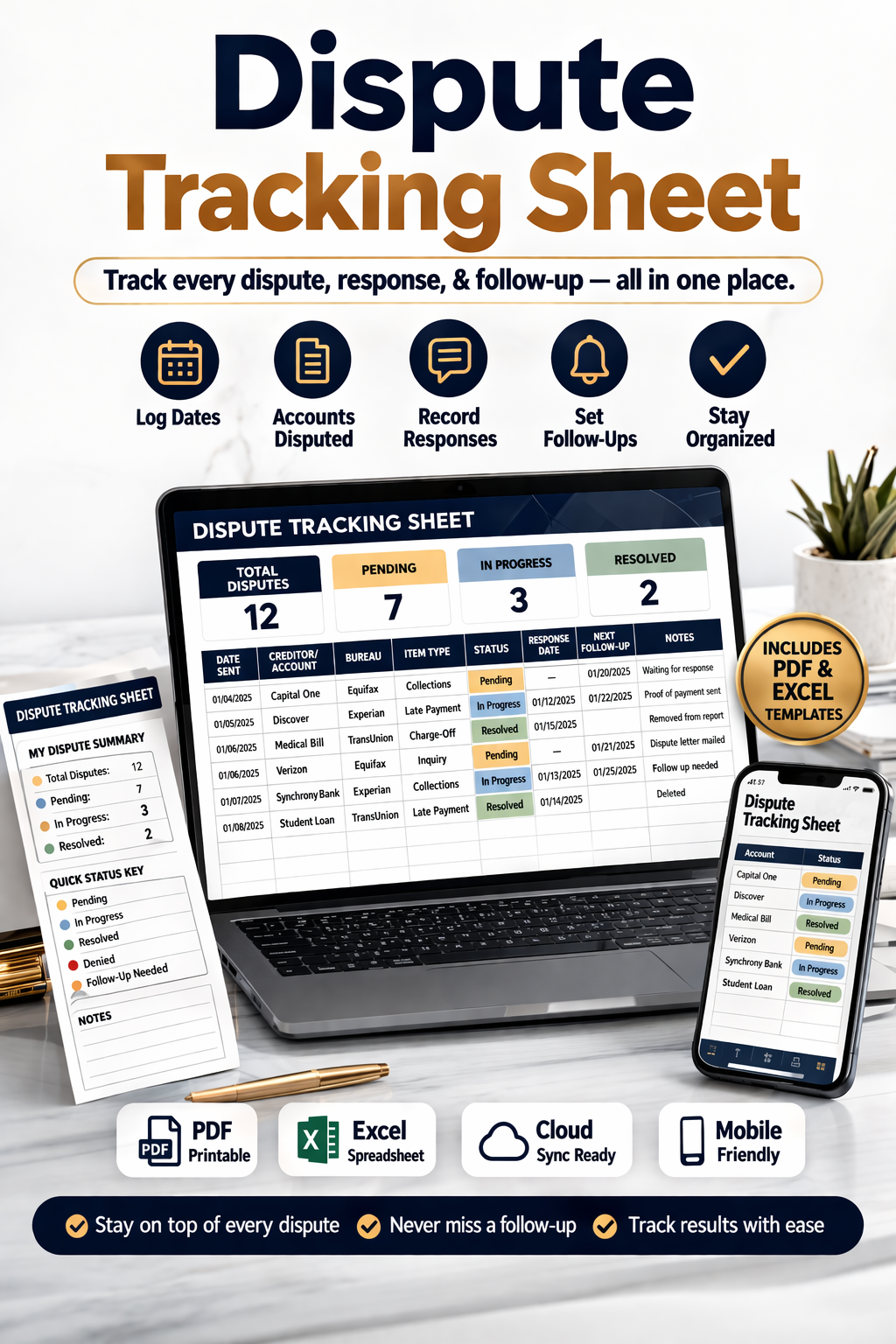 A tracker (PDF or spreadsheet) to log dates, accounts disputed, responses, and follow-ups.