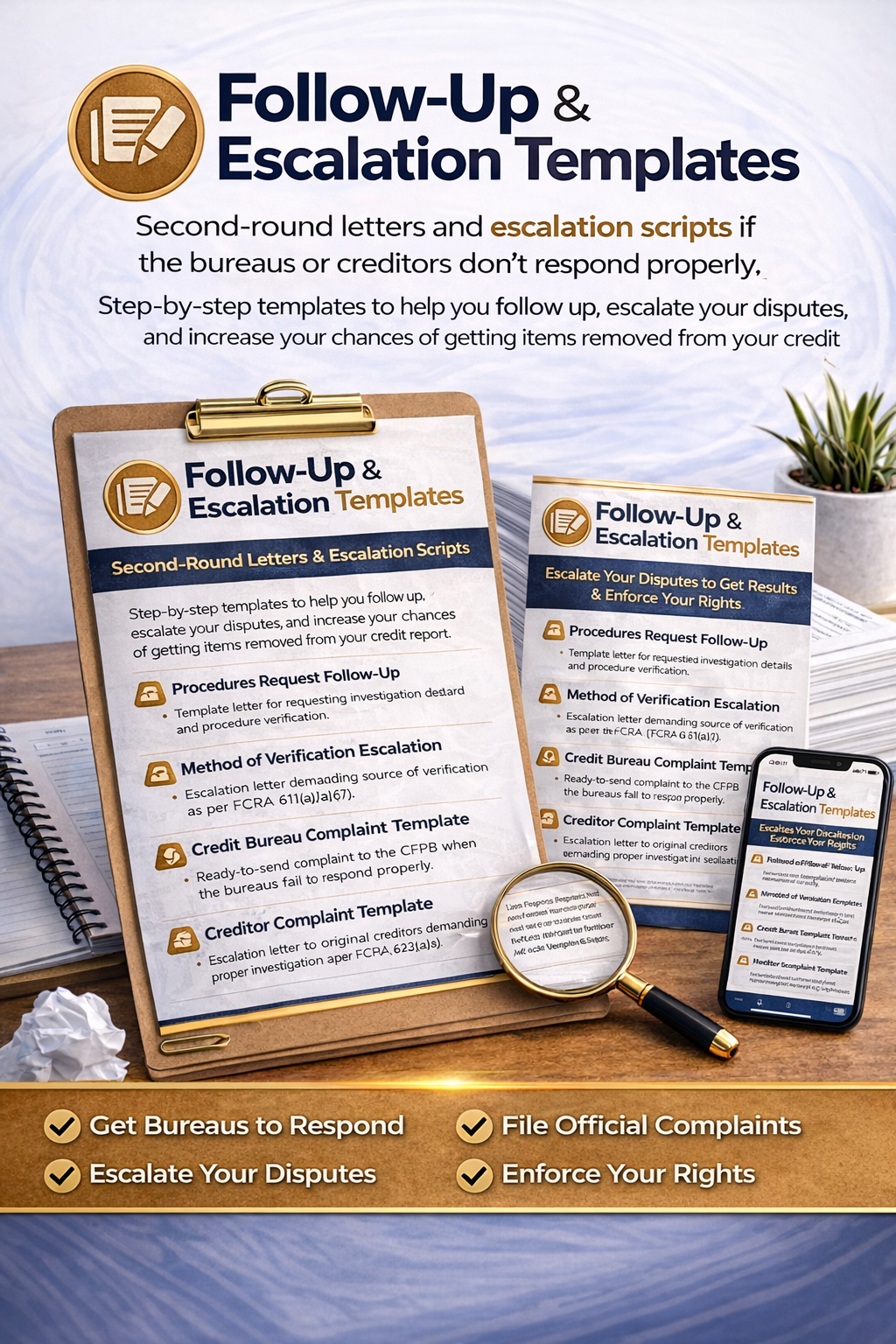 Second-round letters and escalation scripts if the bureaus or creditors don’t respond properly.